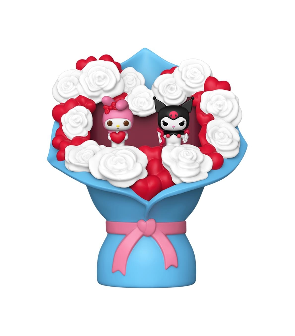 Funko Bitty POP! Bouquet My Melody & Kuromi (Valentine) - Sanrio Incluye: 2 figuras. Figuras de vinilo de 2,3 cm en estuche acrílico con base extraíble. Altura del ramo: 10,9 cm. Ideal para venta al por mayor y distribución especializada.