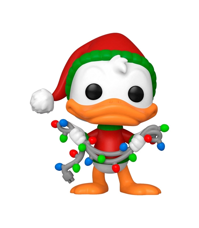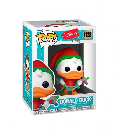 Figura Funko Pop 1128 Holiday - Donald Duck en vinilo, en distribución. Disney. 10 cm de altura. Presentada en caja con ventana.