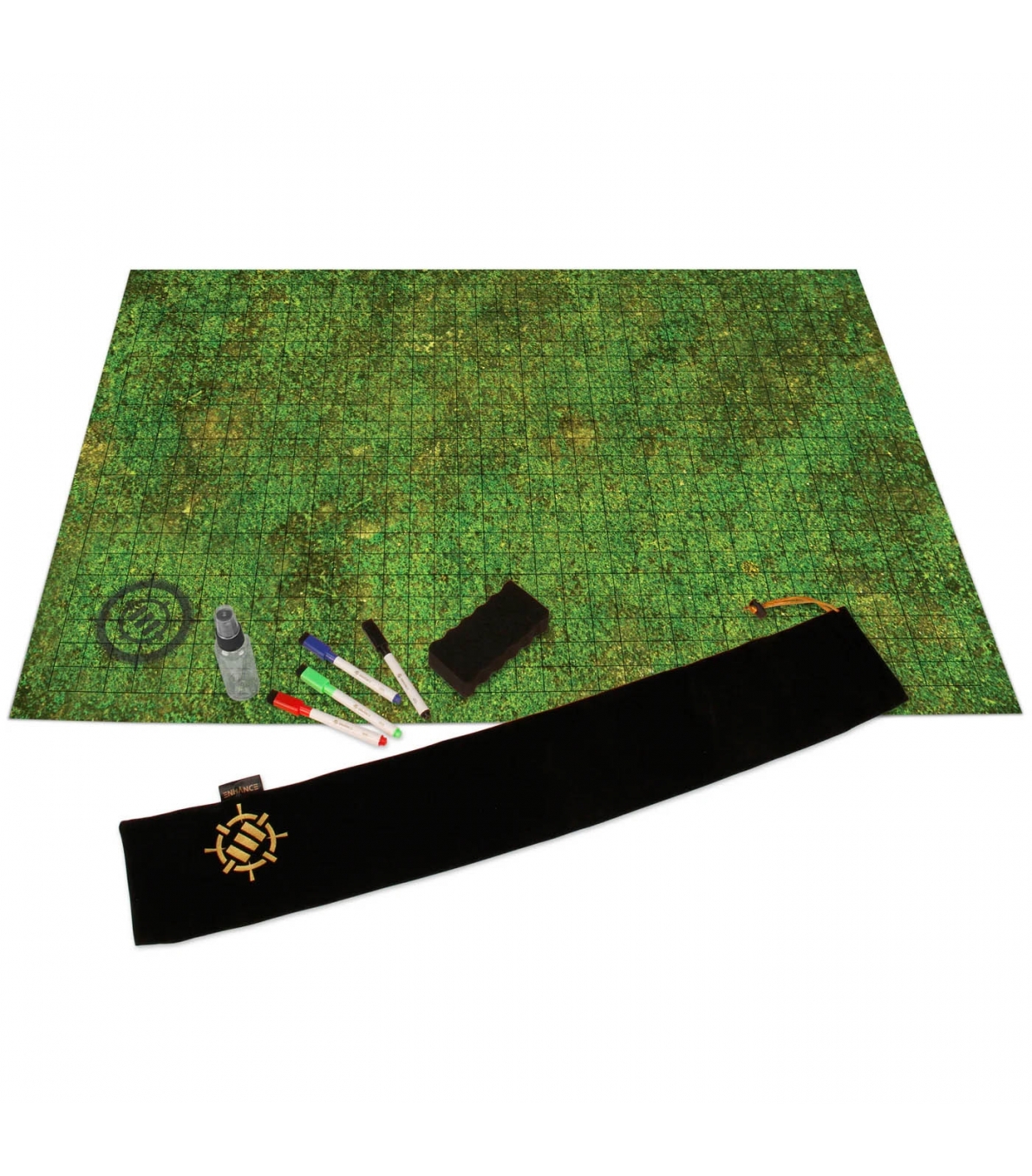 Tapete reutilizable con superficie de borrado en seco, diseño “Grassland”, incluye estuche de transporte. Accesorio ideal para distribuidores de productos de rol centrados en mapas de batalla.