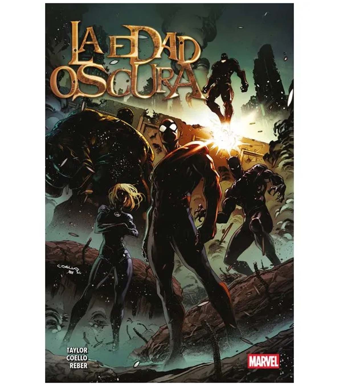 ¡La nueva saga épica escrita por Tom Taylor, con dibujo del alucinante artista español Iban Coello! Un peligro más antiguo que la Tierra lo amenaza todo. Por una vez, los héroes están impotentes frente al enemigo. Las luces se han apagado y el mundo al otro lado de la ventana... está a punto de terminar. ¡El Universo Marvel como nunca lo has visto!
