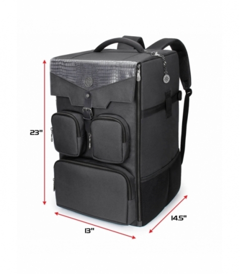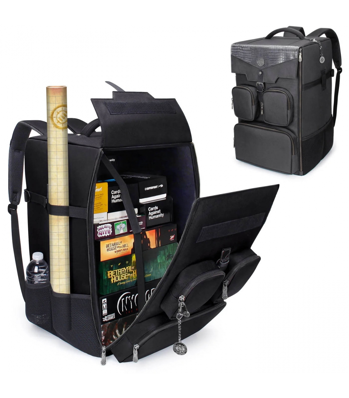 Mochila reforzada para llevar juegos de mesa, cartas, acorde a torneos. Diseño premium “Collector’s Edition” con herrajes metálicos y gran capacidad. Ideal para distribuidores que abastecen tiendas especializadas.