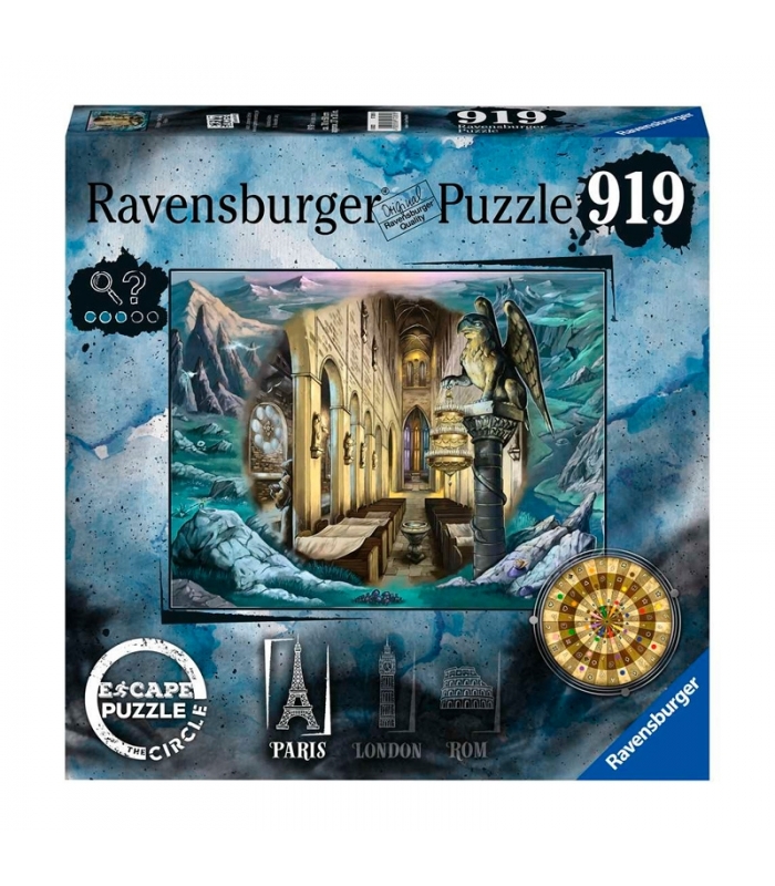 El concepto de juego de escape o exit rooms llega ahora en forma de puzzles de Ravensburger. Todo un desafío: componer el puzzle, identificar los enigmas y resolverlos. ¿Conseguiréis desvelar todos los enigmas y encontrar la última pieza del puzzle? The Circle consta de tres títulos, que se pueden combinar al final para llegar a una solución general. La caja contiene un rompecabezas de aproximadamente 920 piezas, un manual de instrucciones con una historia misteriosa y un dial para decodificar y encontrar las piezas de la solución.