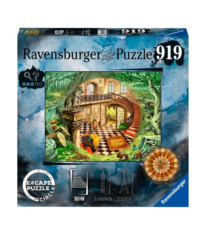 El concepto de juego de escape o exit rooms llega ahora en forma de puzzles de Ravensburger. Todo un desafío: componer el puzzle, identificar los enigmas y resolverlos. ¿Conseguiréis desvelar todos los enigmas y encontrar la última pieza del puzzle? The Circle consta de tres títulos, que se pueden combinar al final para llegar a una solución general. La caja contiene un rompecabezas de aproximadamente 920 piezas, un manual de instrucciones con una historia misteriosa y un dial para decodificar y encontrar las piezas de la solución.
