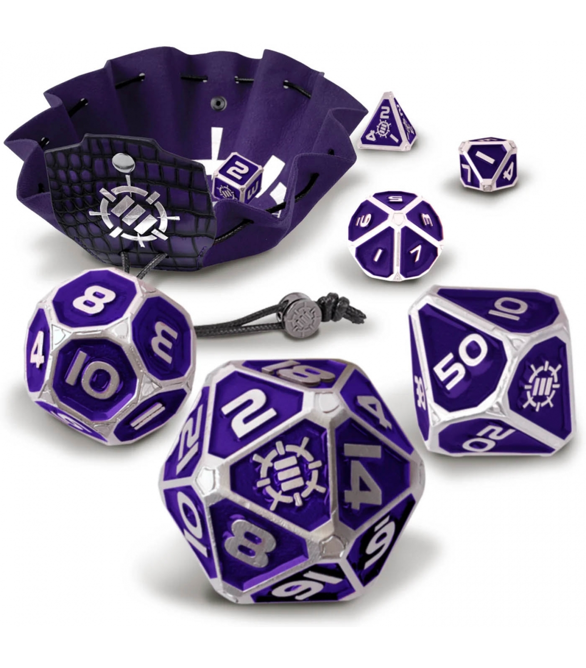Set Dados Metal DnD Bandeja 2en1 (Edición Coleccionista Púrpura) - Enhance Gaming