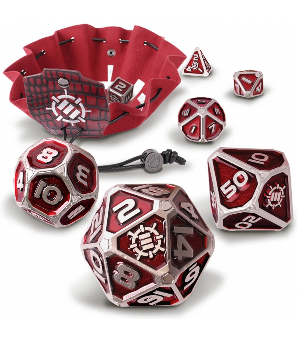 Set Dados Metal DnD Bandeja 2en1 (Edición Coleccionista Roja) - Enhance Gaming