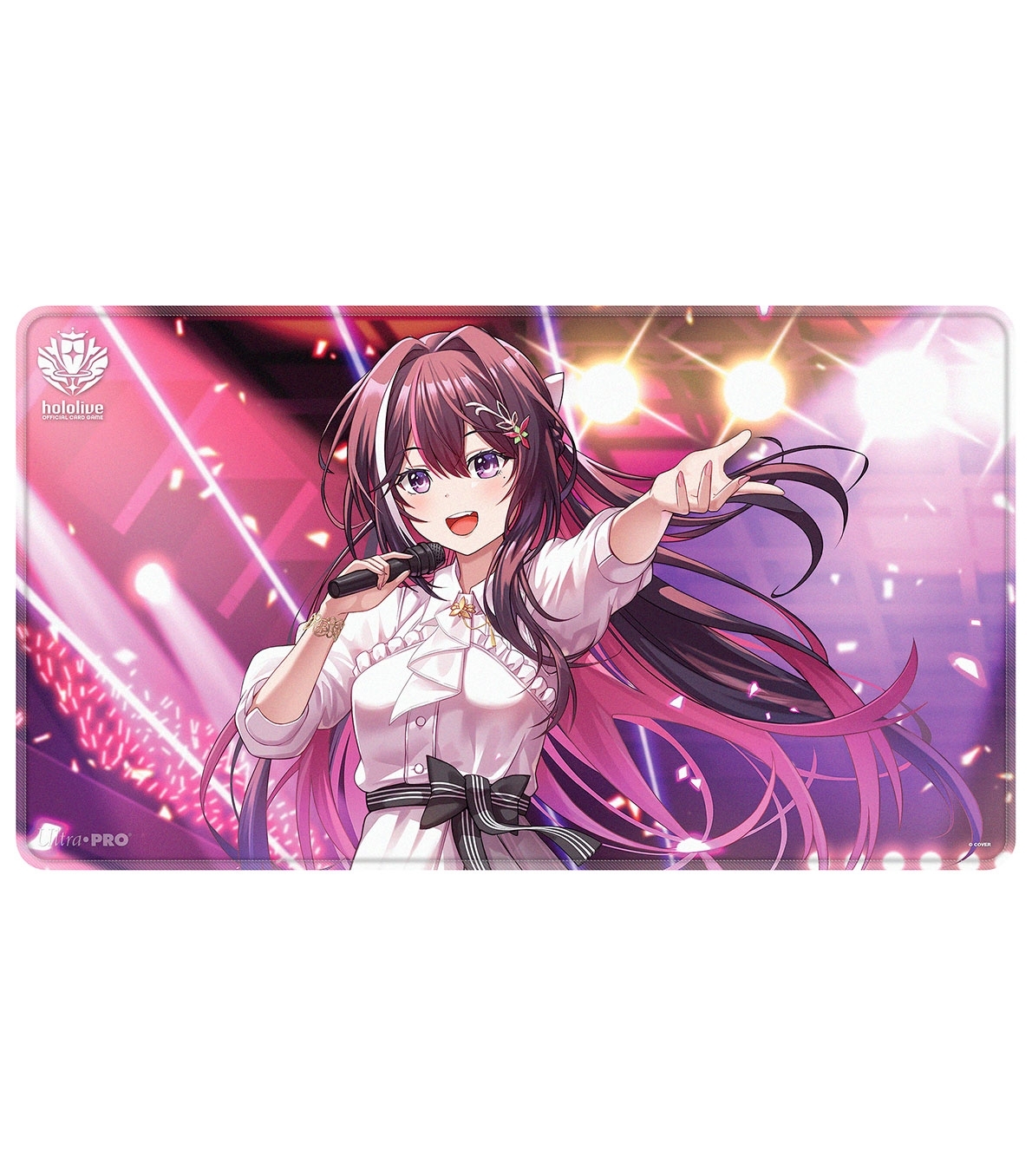 Tapete de juego con arte a todo color de AZKi, la diva virtual de hololive. Superficie de tela suave ideal para proteger cartas durante el juego. Base de goma antideslizante que mantiene el tapete en su sitio. Medidas aprox. 61 x 34,3 cm (24 x 13,5 in). Distribución al por mayor para tiendas de TCG y coleccionismo.