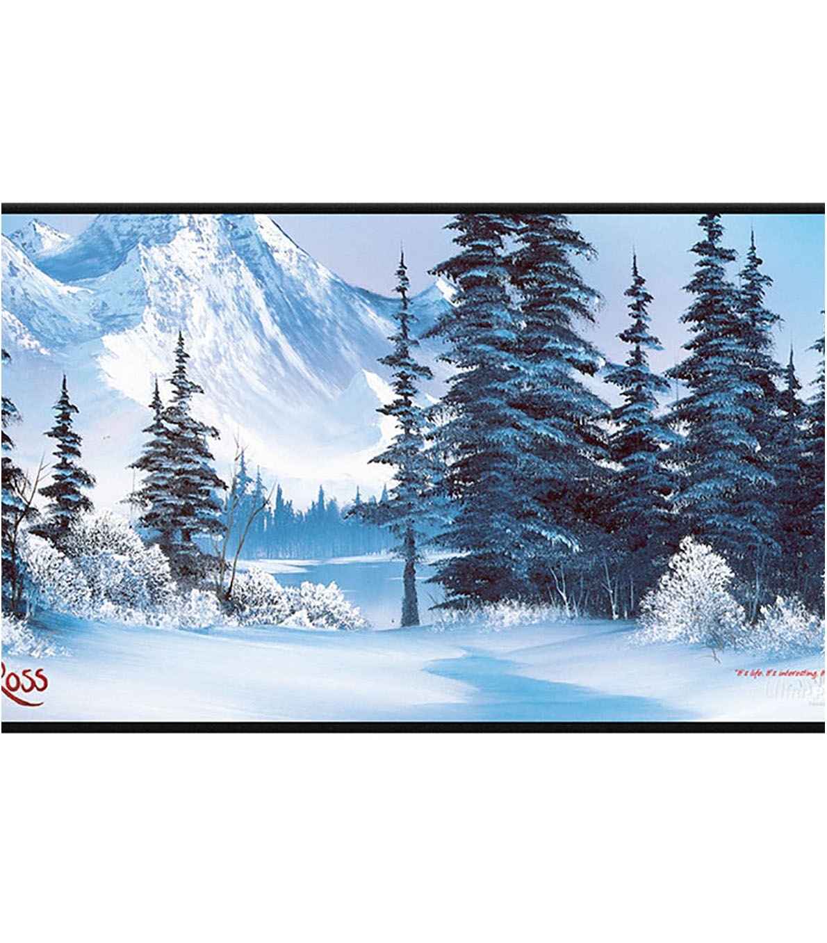 Tapete estándar con bordes cosidos - Bob Ross: Winter Paradise - Ultra Pro. Tapete con arte original de Bob Ross en paisaje invernal. Bordes negros cosidos para mayor resistencia y acabado premium. Superficie de tela suave para proteger cartas durante el juego. Base de goma antideslizante para mayor estabilidad. Medidas aprox. 61 x 34,3 cm (24" x 13,5"). Distribución para tiendas y venta al por mayor.