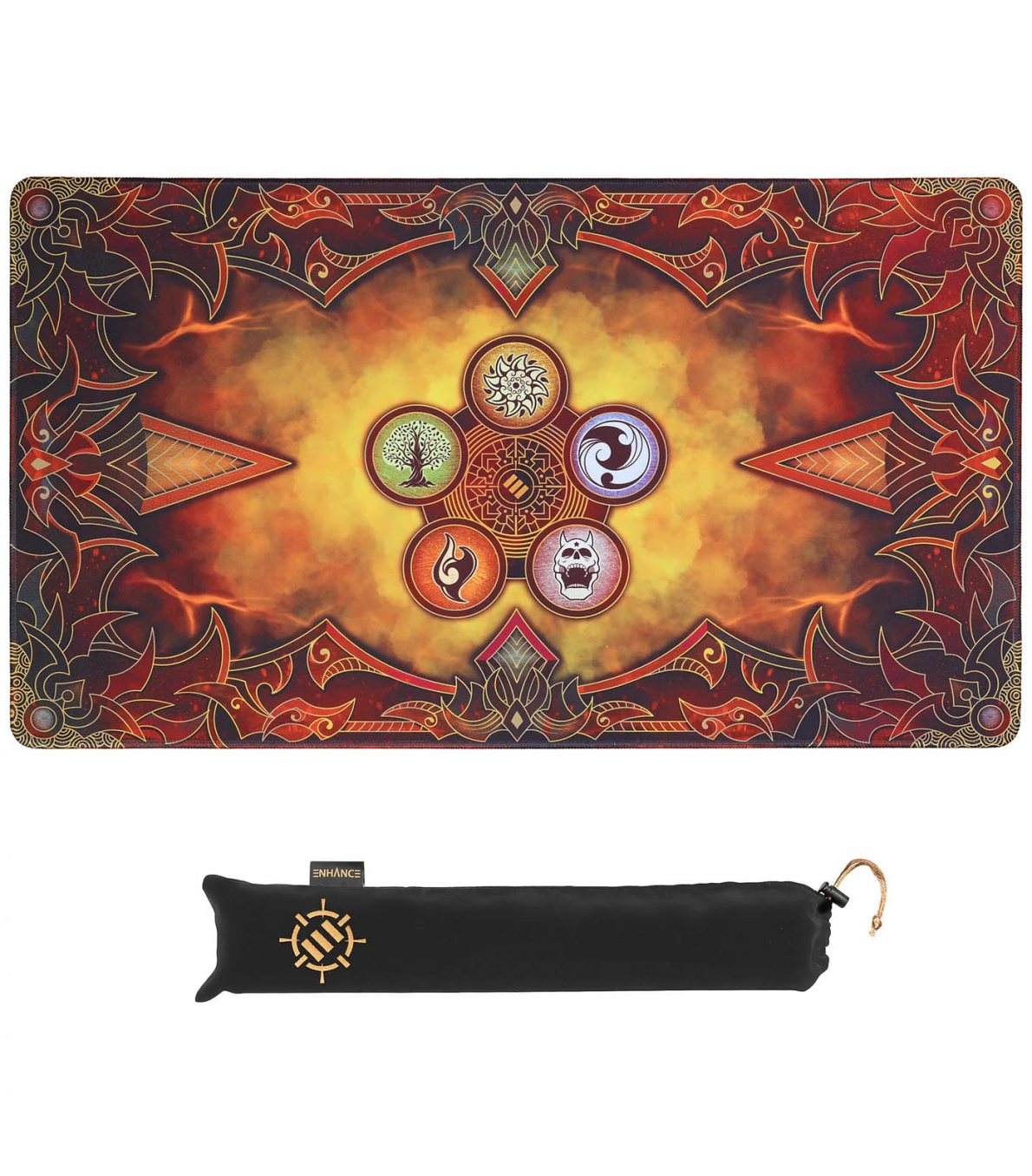 Variante del tapete de cartas: misma dimensión y materiales premium, diferente diseño. Producto orientado a distribuidores de accesorios para cartas coleccionables.