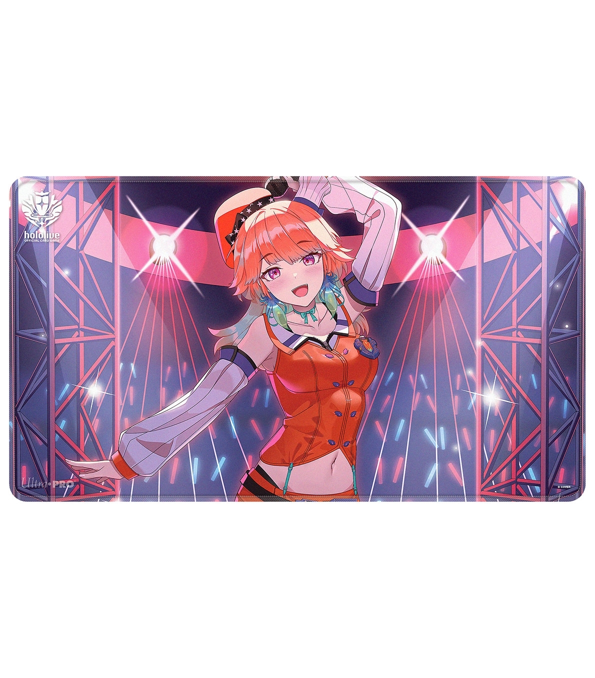 Tapete de juego con ilustración a todo color de Takanashi Kiara. Superficie de tela suave y base de goma antideslizante. Medidas aprox. 61 x 34,3 cm (24 x 13,5 in). Ideal para partidas de TCG o como alfombrilla XL de escritorio. Distribución al por mayor para tiendas de juegos y coleccionismo.