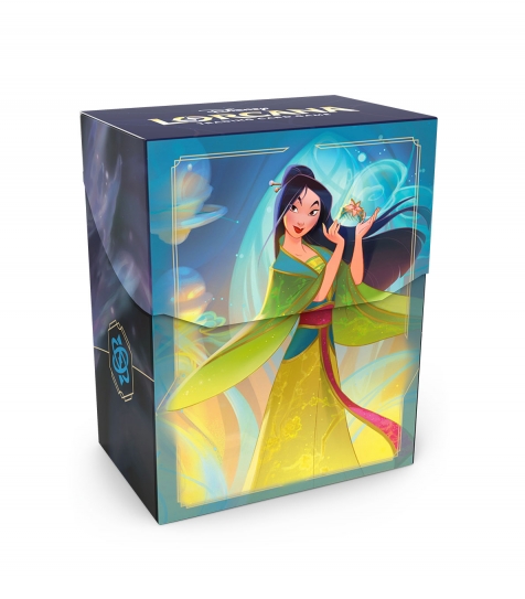 Caja de mazo rígida con diseño de Mulan: Considerate Diplomat, ideal para almacenar y proteger cartas de Disney Lorcana TCG. Capacidad para hasta 80 cartas enfundadas. Producto en inglés, disponible para distribución al por mayor en tiendas especializadas.
