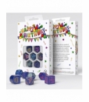 Set de dados Happy Birthday Streamers (7 uds.) - Q Workshop. Set temático de cumpleaños con 7 dados policromáticos en azul brillante. Grabados con motivos festivos: tarta, globos, fuegos artificiales y más. Ideal como regalo o artículo destacado en tienda. Distribución para comercios especializados y venta al por mayor.
