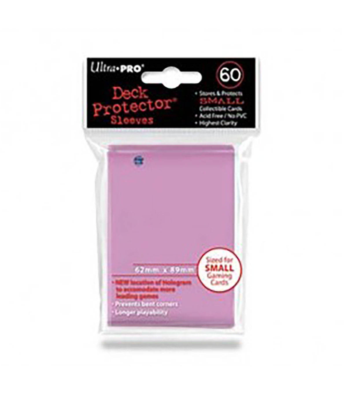 Fundas Small 62mm x 89mm Rosa (60 fundas) Ultra Pro. Tamaño small 62x89 para juegos de cartas como Yu-Gi-Oh!. Color Rosa. Paquete de 60 unidades.