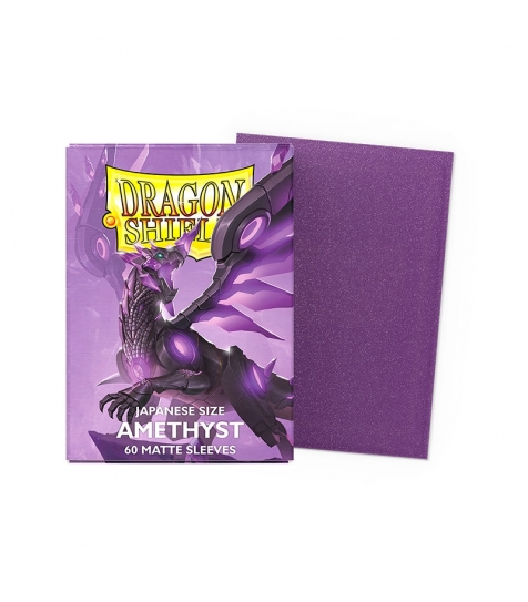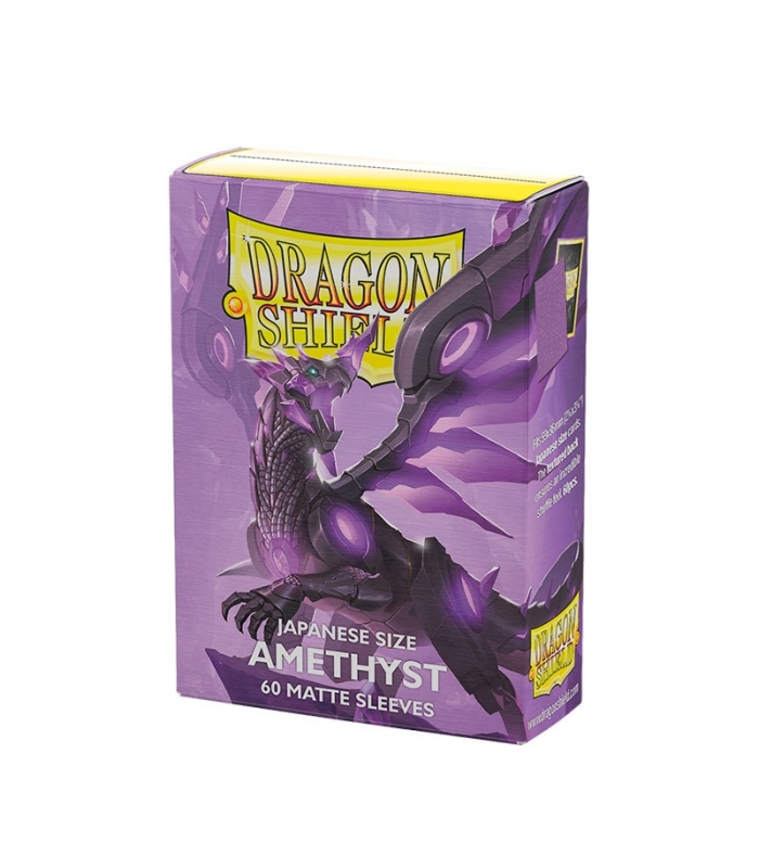 Amethyst Sleeves - Japanese Size - Matte 60. Haz que tu mazo deslumbre en la mesa con las fundas Matte Amethyst. Su acabado brillante aporta un estilo único mientras su reverso texturizado garantiza un barajado preciso y fluido en cada partida. Con la calidad premium de Dragon Shield, estas fundas ofrecen máxima protección y resistencia. El pack incluye 60 fundas de tamaño japonés (59x86 mm), ideales para juegos como Yu-Gi-Oh! y Cardfight!! Vanguard. Presentadas en una caja de cartón reutilizable, perfecta para almacenamiento y transporte. ¡Dale a tu mazo el toque de elegancia que se merece!