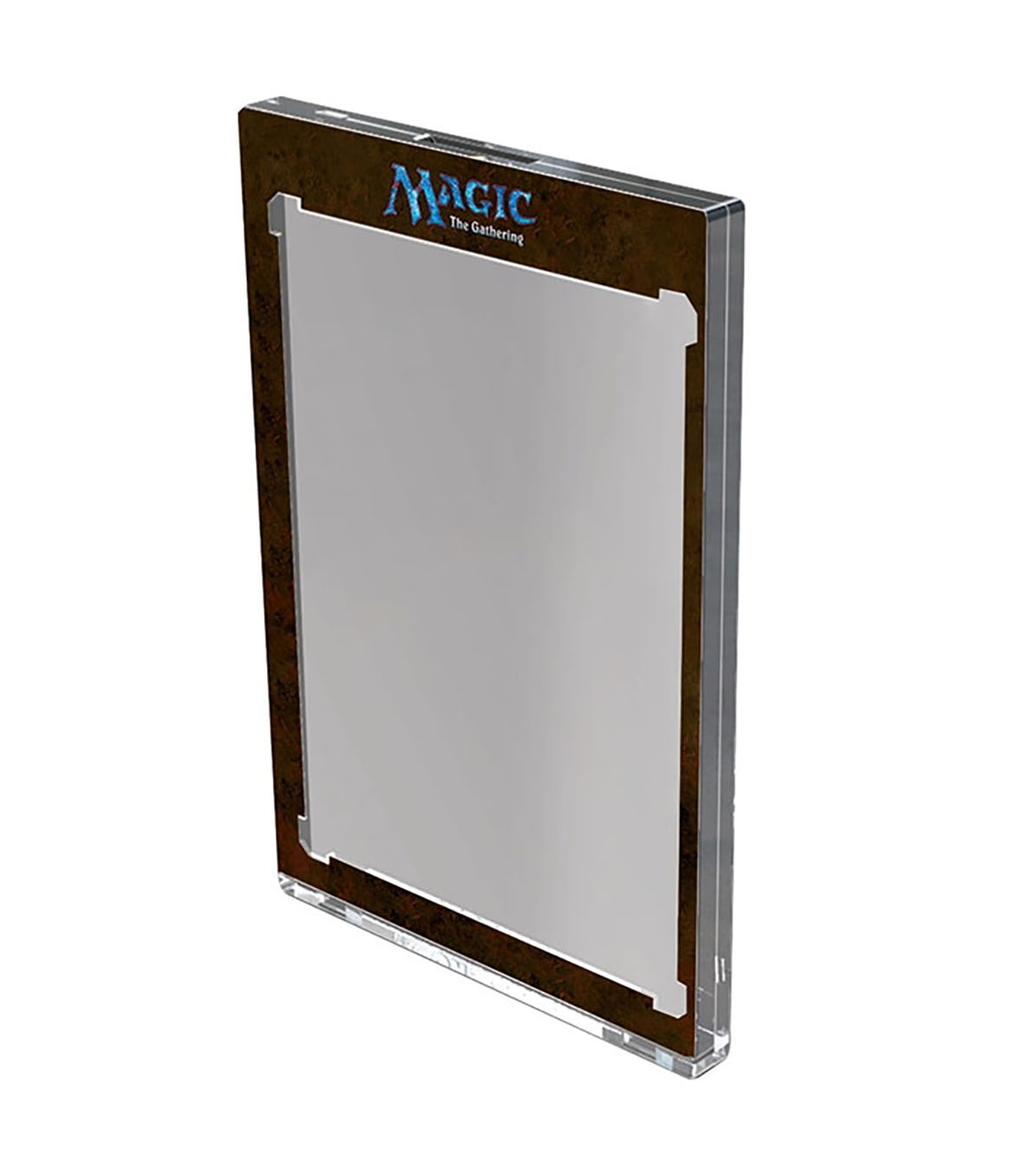 Almacenamiento y visualización magnéticos impresos con UN TOQUE para cartas Magic: The Gathering de tamaño estándar (2 ⅝ x 3 ¾ pulgadas) de hasta 35 puntos de grosor Arte impreso vibrante en el borde frontal y posterior con el icónico diseño moderno del reverso de la carta Magic: The Gathering. Esquinas de diamante para mantener las esquinas de las cartas en perfecto estado. Fabricado con materiales sin PVC con aditivos que bloquean los rayos UV para una protección superior La bisagra deslizable y el cierre magnético mantienen su carta segura